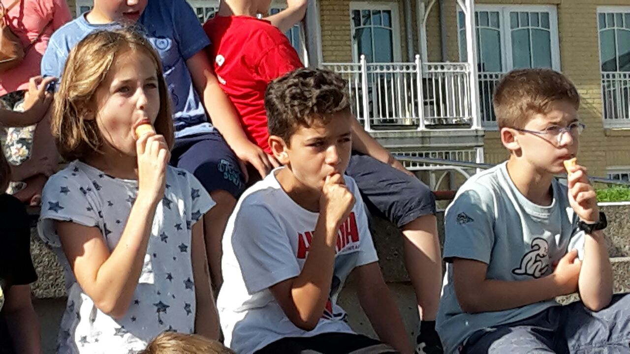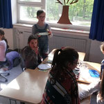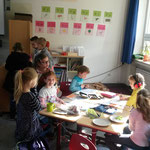 Am letzten Tag der Unterrichtseinheit haben die Kinder ein kleines Buffet vorbereitet und jeweils eine erste Klasse mit dem Essen überrascht.